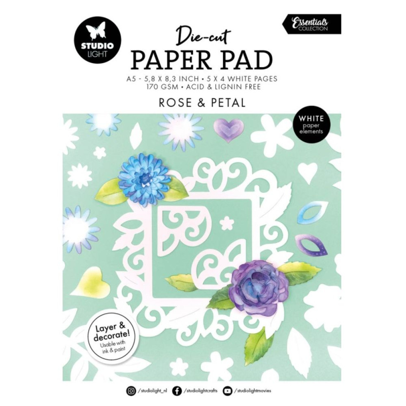 Studio Light Blok s papírovými výseky Studio Light, A5, 20 l. - Bílé květiny