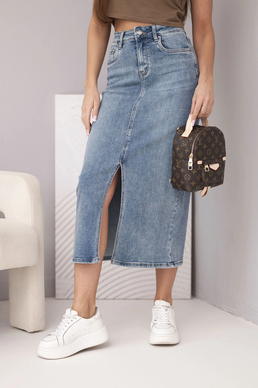 Dámská džínová midi sukně s předním rozparkem