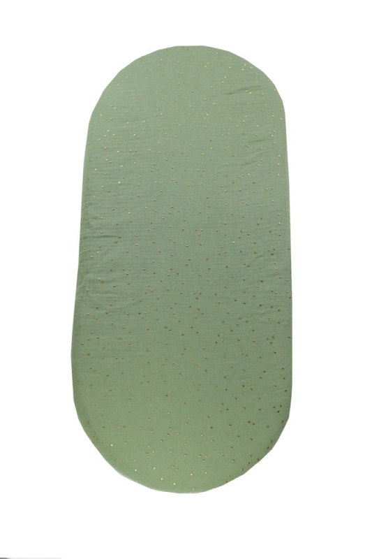 enie baby Mušelínové prostěradlo do kočárku khaki se zlatými puntíky
