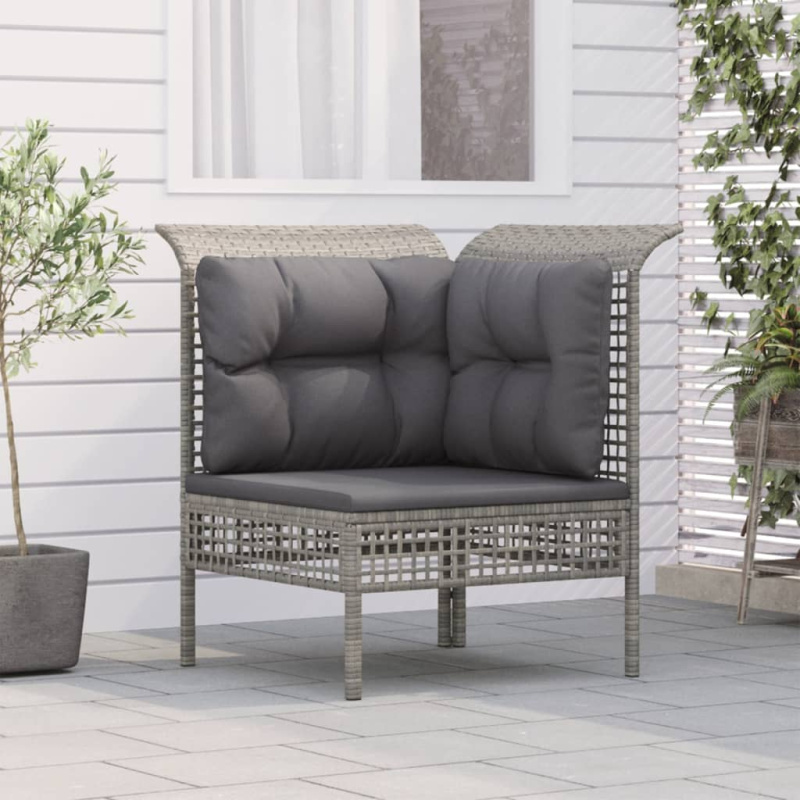 Zahradní S Poduškou Šedá Polyratan - Rohová pohovka (2 ks)