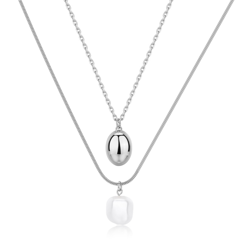 S'Agapõ Dvojitý ocelový náhrdelník s perlou Shell Wisdom SWI41