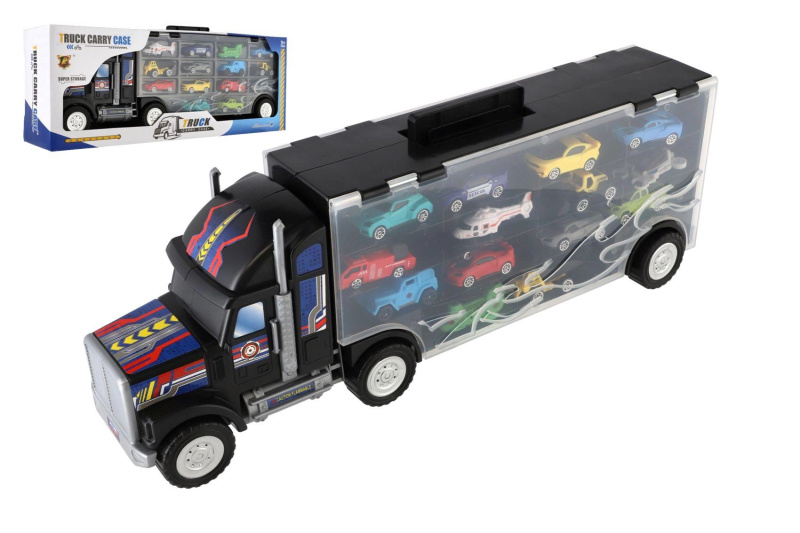 Kamion přepravník s úložným kufříkem a 14 autíčky, 57 cm
