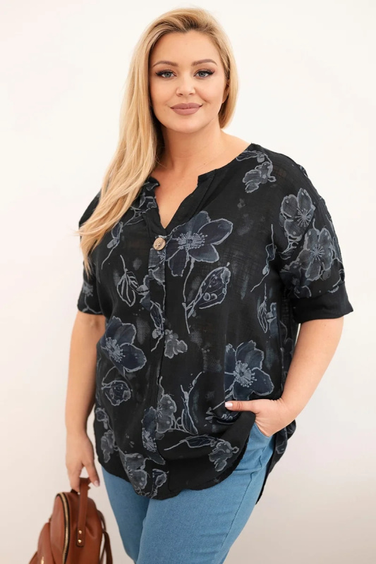 Kesi dámská bavlněná plus size halenka s květinovým vzorem