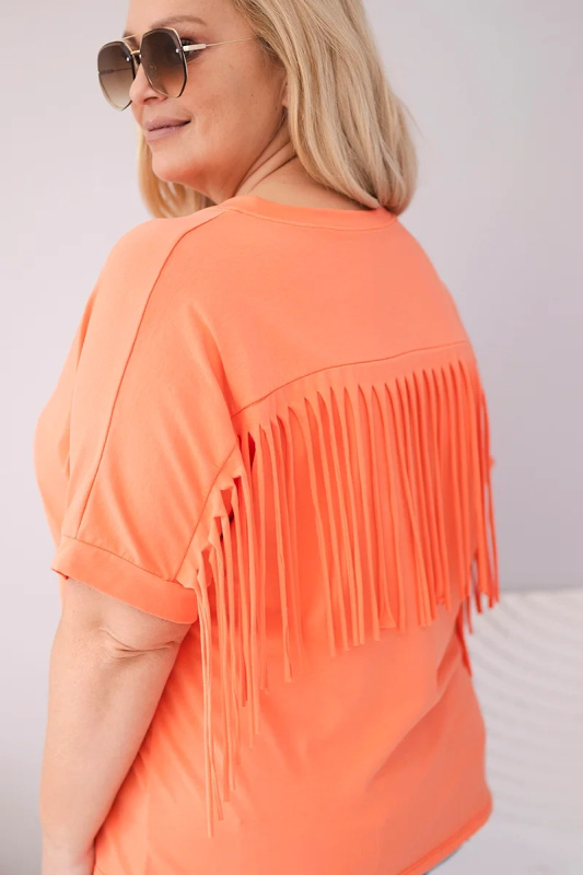 Dámská oversize halenka s V-výstřihem a třásněmi