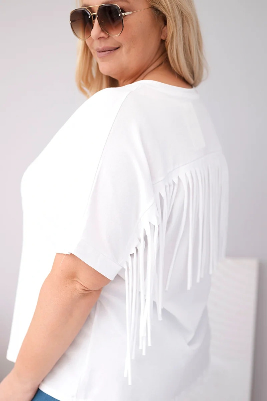 Dámská bavlněná halenka s výstřihem do V a třásněmi bílá
