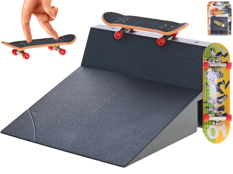 Mikro Skateboard 9,5cm kov s rampou na kartě