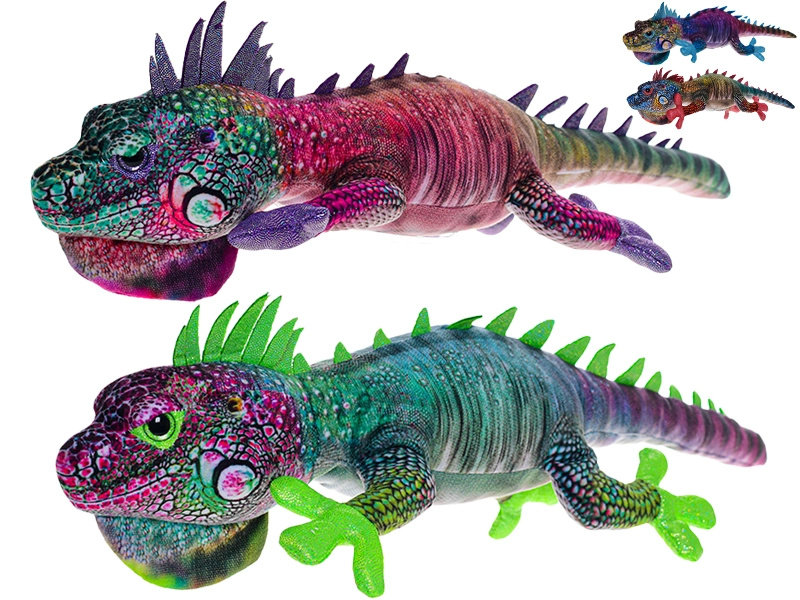 Leguán mix barev modrá fialová zelená červená 42 cm