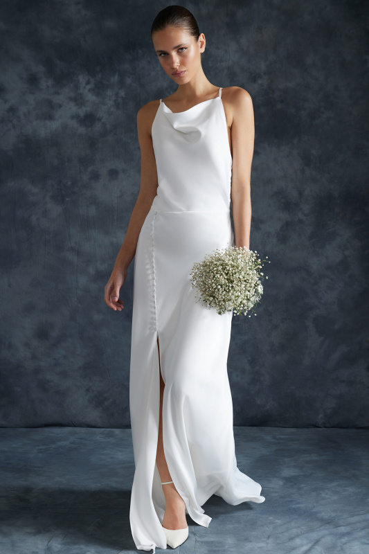 Trendyol Svatební Bílé Saténové Svatební/Dlouhé Večerní Šaty