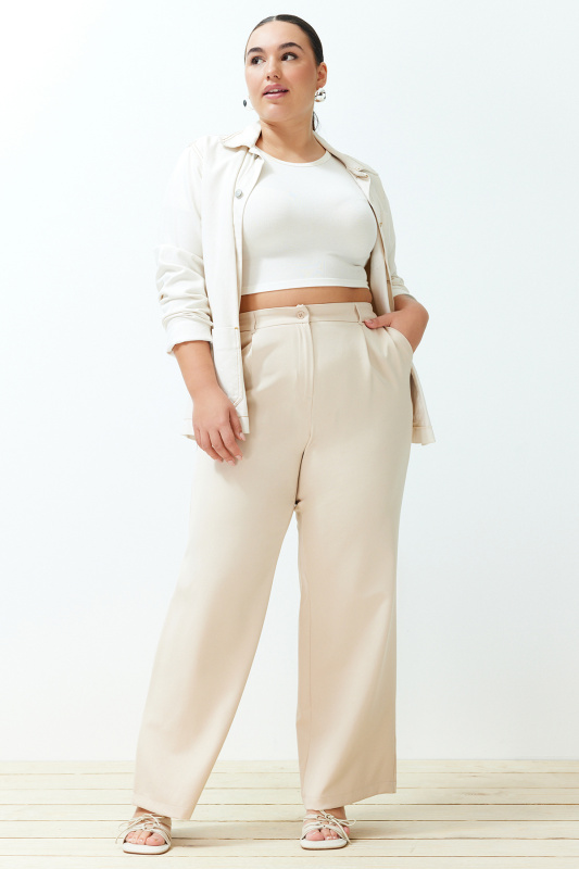 Trendyol Curve Kamenné Kalhoty s Vysokým Pasem a Širokými Nohavicemi s Plisováním