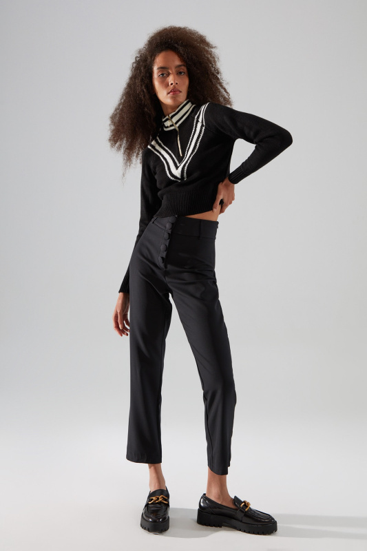 Trendyol černé tkané kalhoty se širokými nohavicemi