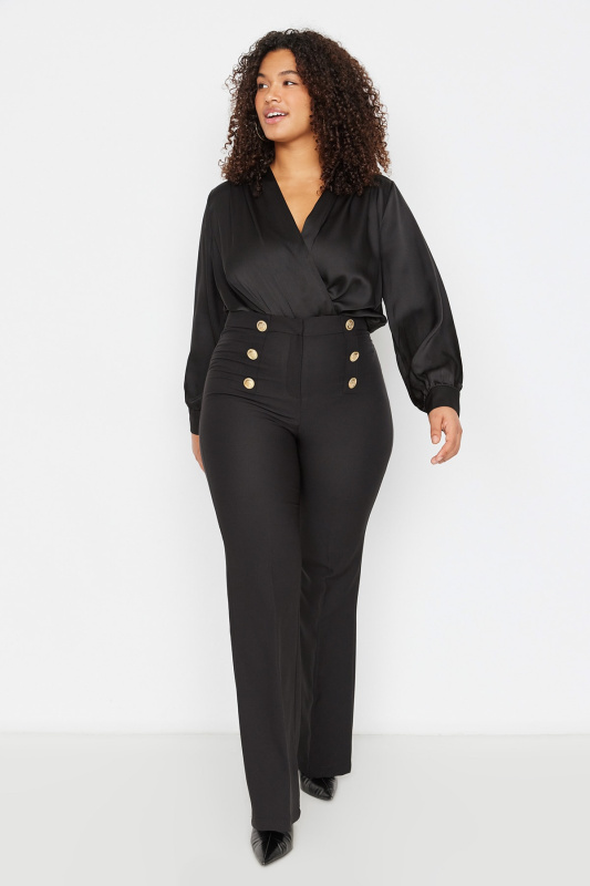 Trendyol Curve černé kalhoty s vysokým pasem a páskem