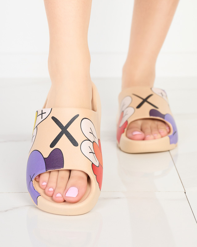 Béžové gumové dámské pantofle s potiskem Pfizz