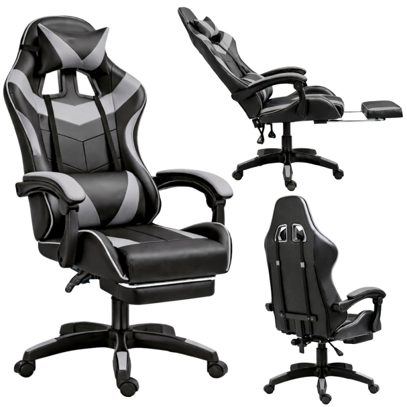 Herní kancelářská židle LEAN s výsuvnou opěrkou nohou, černošedá