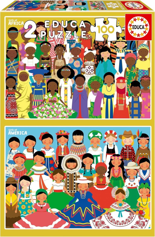 Educa puzzle Dívky z Ameriky a Afriky 2×100 dílků