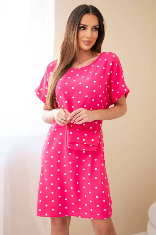 Fuchsiové tečkované šaty s kabelkou