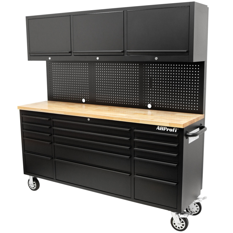 Pojízdný pracovní stůl s děrovanou deskou a horními skříňkami - AH7218B