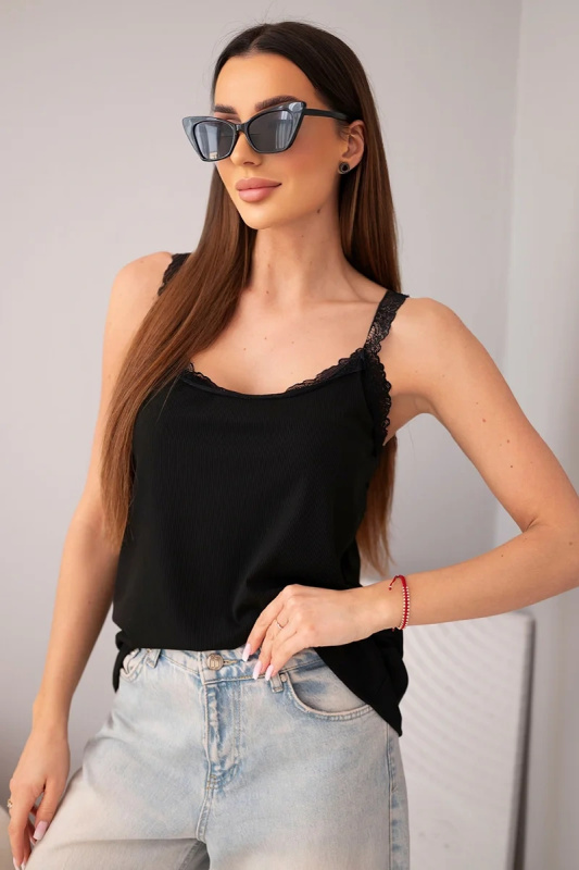 Kesi dámský top na ramínka s krajkovým lemem černý
