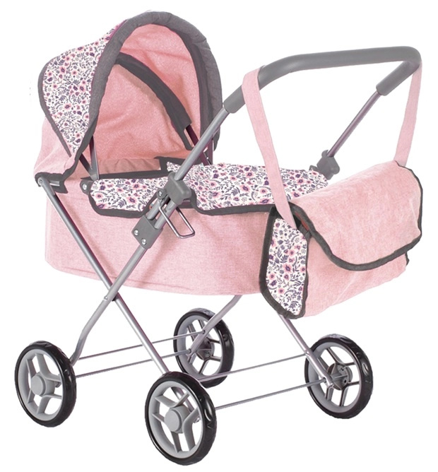 Kočárek hluboký pro panenky Pink Flowers