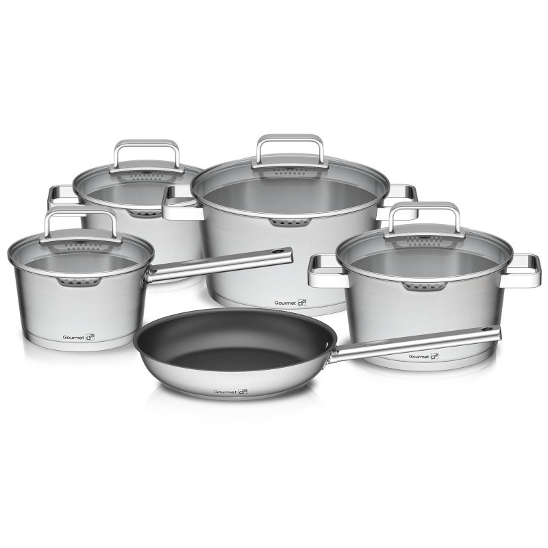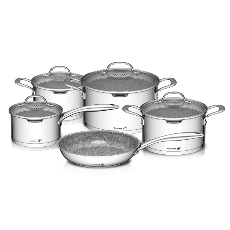 G21 Sada nádobí Gourmet Miracle s cedníkem 9 dílů, nerez/greblon