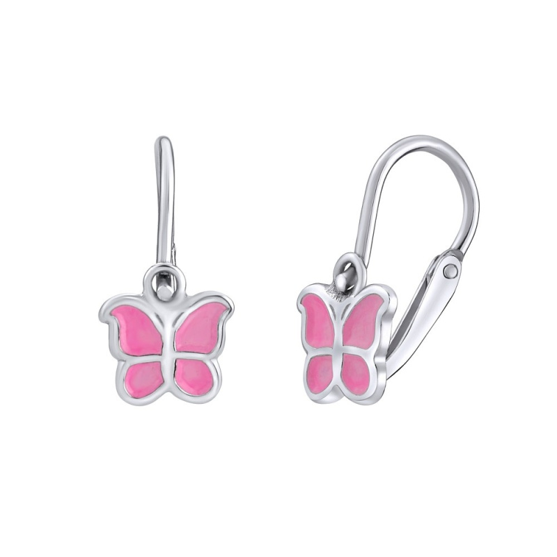 Silvego Stříbrné dětské náušnice Motýl-růžová světlá SILVEGOB70273-sp