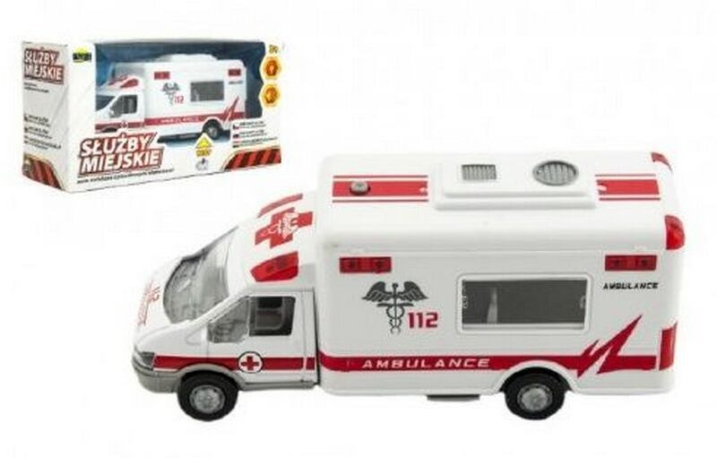 Auto ambulance městské služby plast 15 cm na baterie se zvukem se světlem