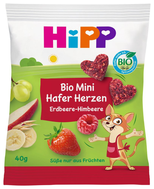 HiPP BIO Ovocno-obilná srdíčka jahoda-malina 40 g