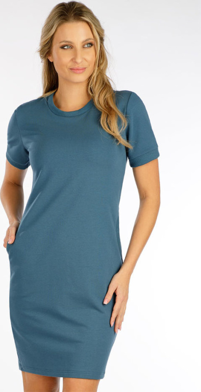 Dámské šaty LITEX s krátkým rukávem modrí Barva: petrolejová, Velikost: L