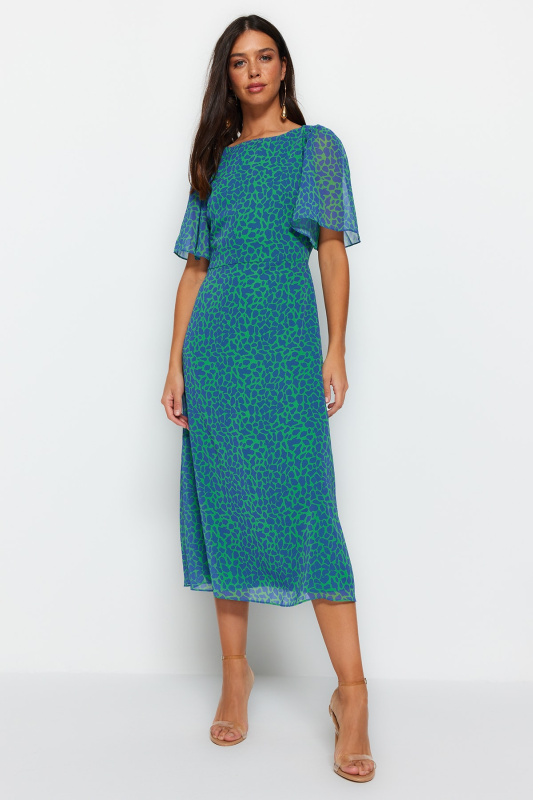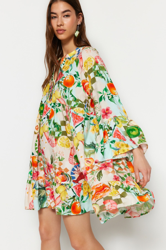 Trendyol oranžová květinová sukně volánková lemovaná tkaná šifonová šaty