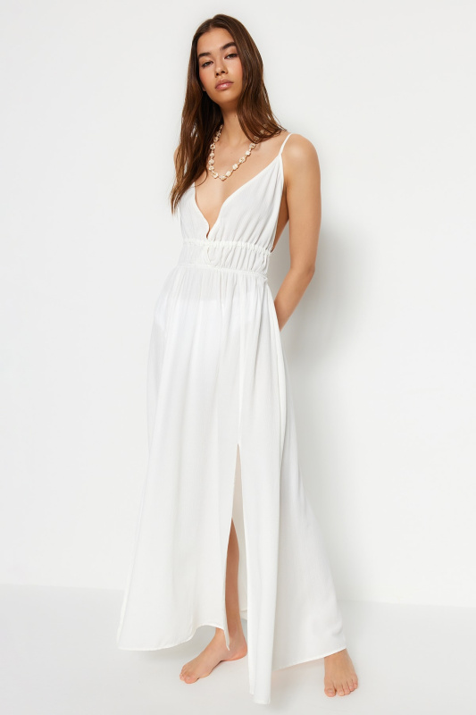 Trendyol norková sukně s páskem a detaily na ramenou, s volánky, tkané šaty.