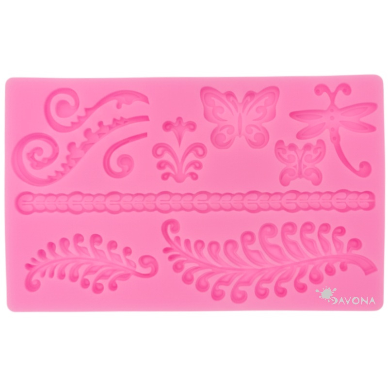 Silikonová forma - motýli a ornamenty (1ks)