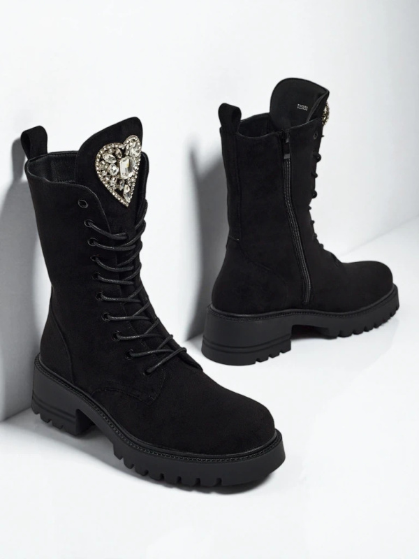 Resti Women's Eco Suede Ankle Boots Decorated with Rhinestones TangleMist
