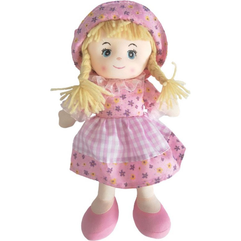 Panenka hadrová 30 cm světle růžové šatičky a čepicí