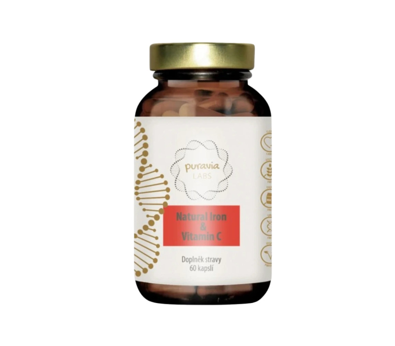 PURAVIA LABS Přírodní železo s vitaminem C (bio acerola) 60 kapslí