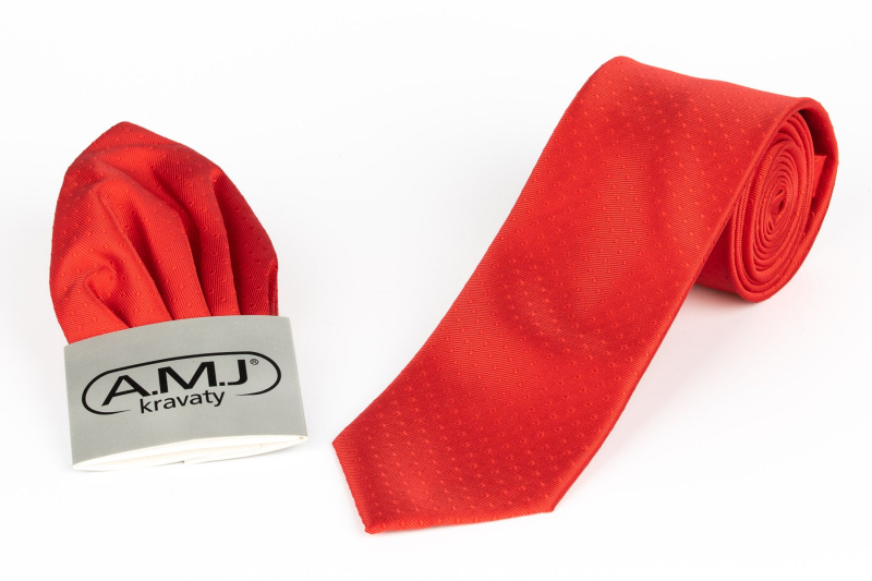 AMJ Kravata pánská s kapesníčkem AMJ, puntíky, KK0545, červená
