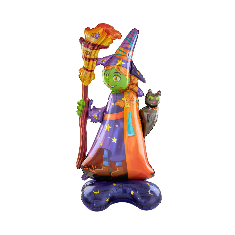 Balónek fóliový stojící Čarodějnice s kočkou 72 × 155 cm Albi