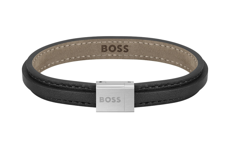 Hugo Boss Černý kožený náramek pro muže Tailored 1580676 17,5 cm