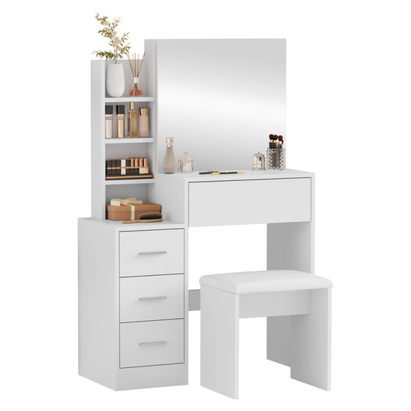 Toaletní stolek s taburetem, bílá, RADAS