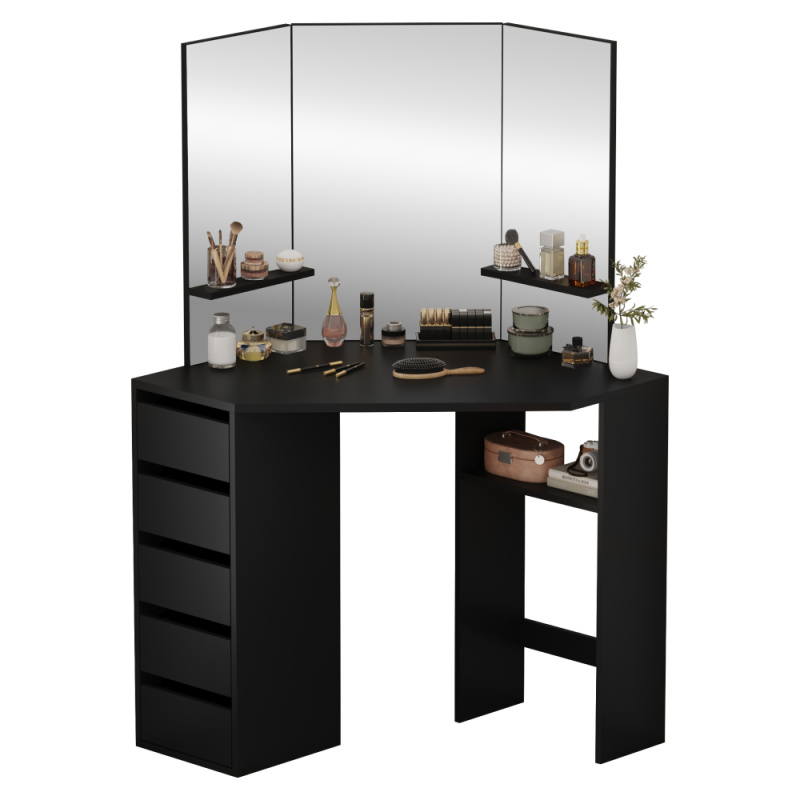Rohový toaletní stolek, černá, ELIO