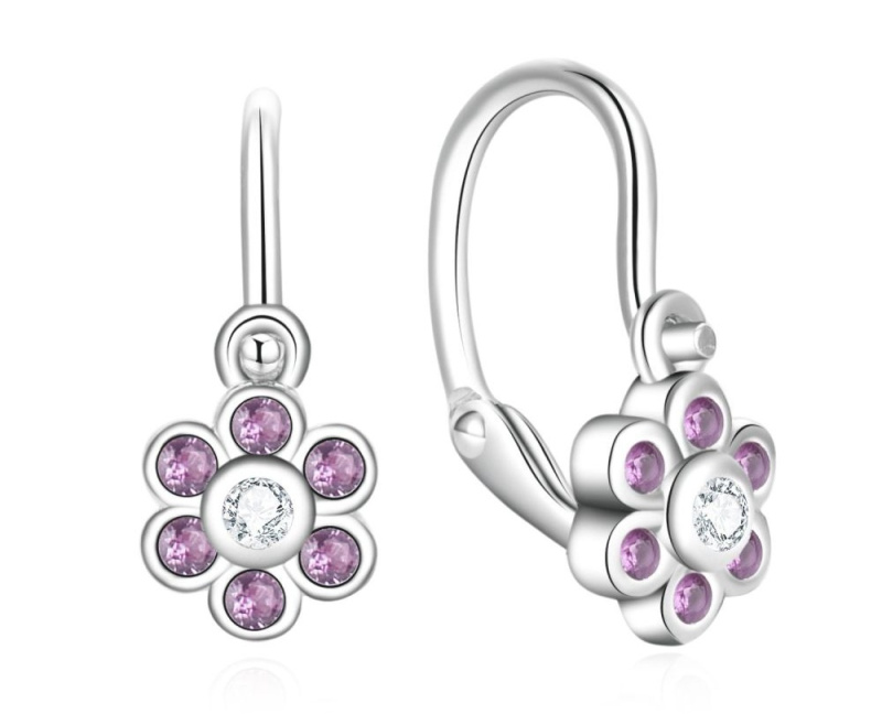 MOISS Dívčí stříbrné kruhy Květina se zirkony E0004495