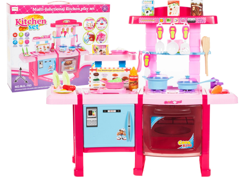 Růžová dětská dvojitá kuchyňka s doplňky