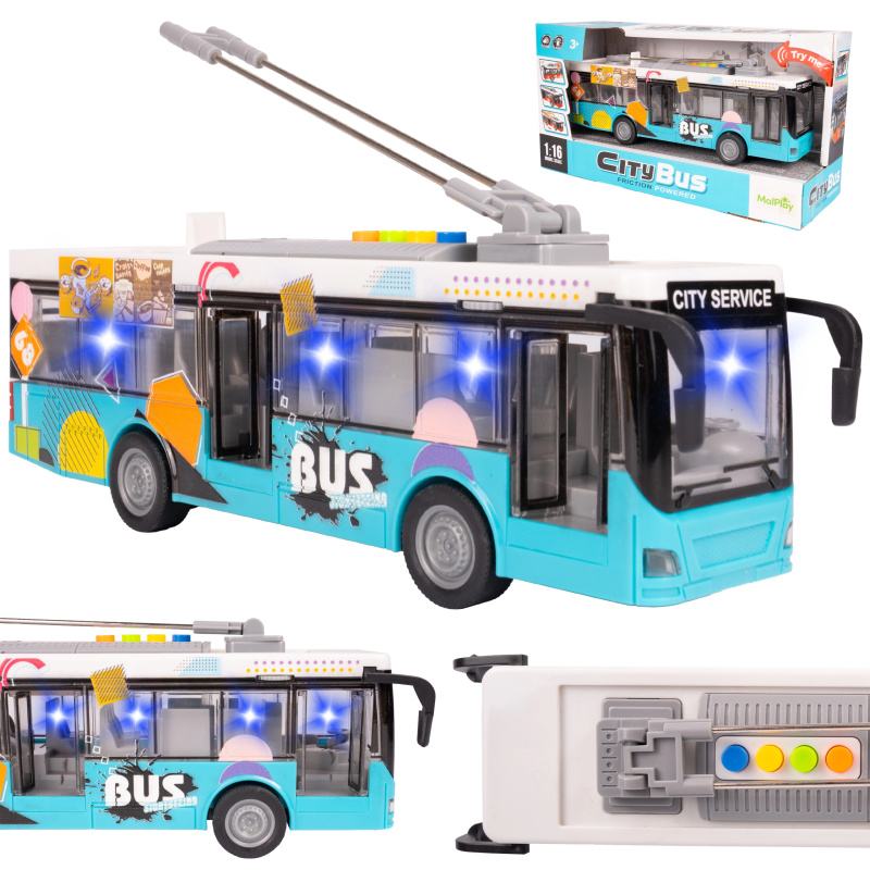 Městský autobus 1:16 se světlem a zvukem – modrý