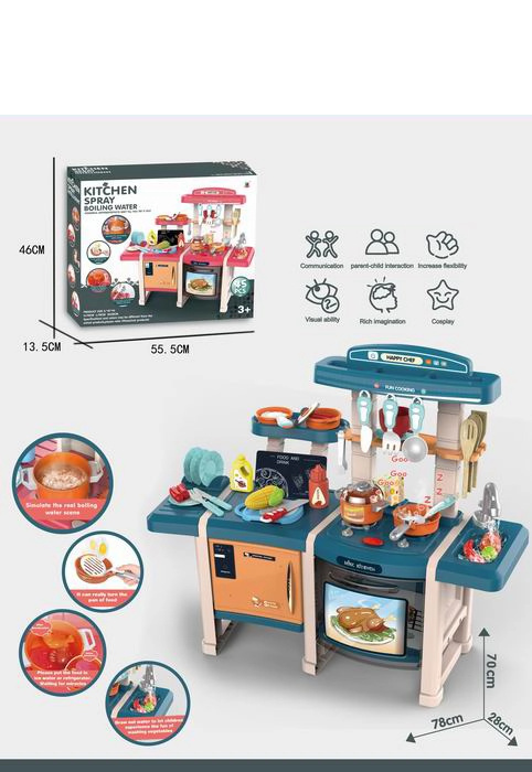 Dětská dvojitá kuchyňka modrá 70 cm, 45 dílů