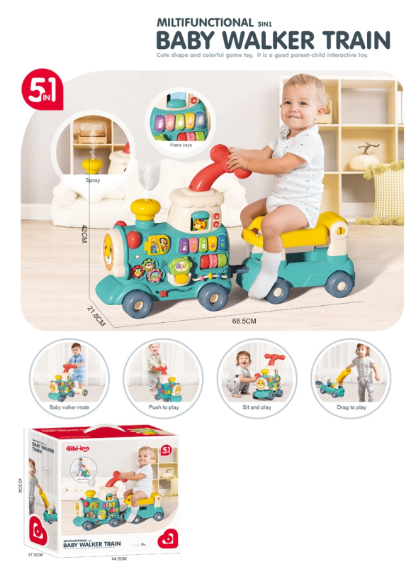 Chodítko lokomotiva pro děti 5v1 – modré