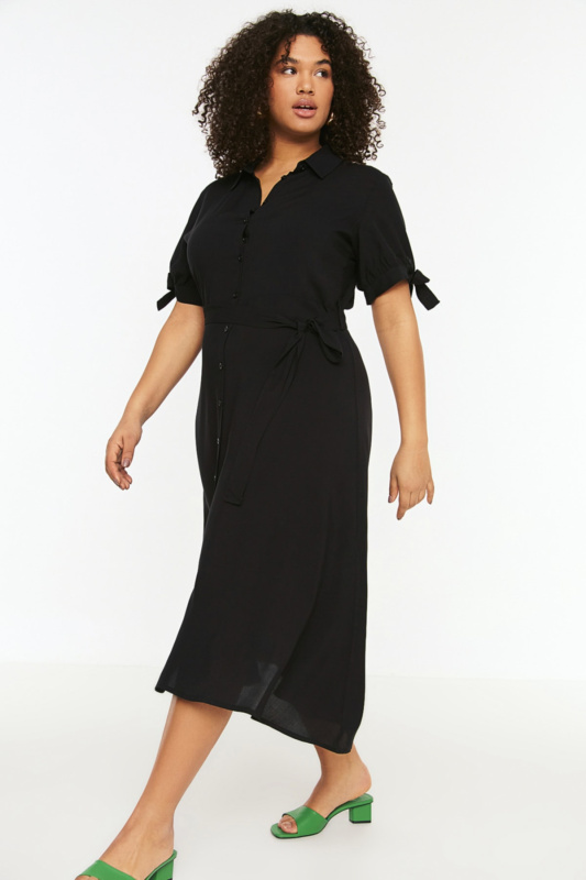 Trendyol Curve Black Maxi Collar Flounce Plus Size Beach Dress