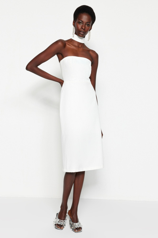 Trendyol Ecru lemované tkané svatební / svatební elegantní večerní šaty