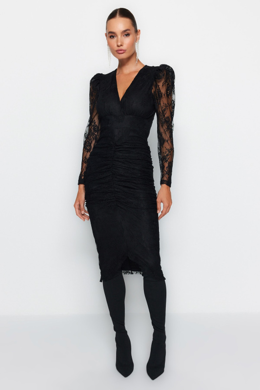 Trendyol Černé Tkané Dlouhé Večerní Šaty